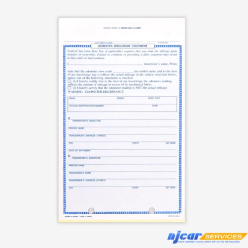 2-Part Odometer Mileage Statement