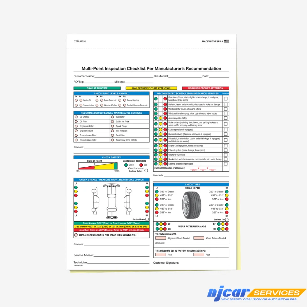 Multi-Point Vehicle Inspection Report – 2 Part – Qty. 250