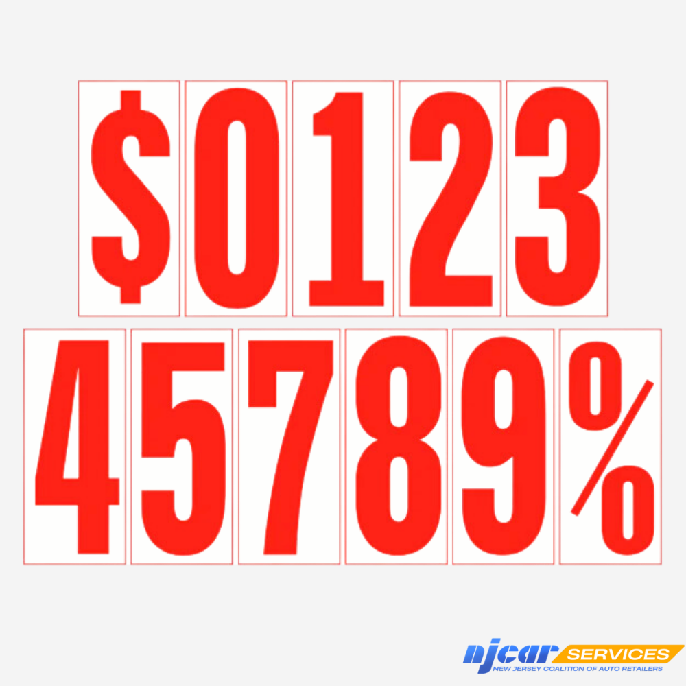 Waterproof vinyl adhesive numbers designed for car windshields. Easy to apply and remove without residue.