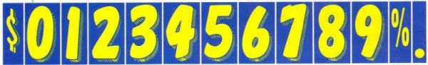 Description: 7 1/2″ tall x 4″ wide with 3-D shaded design, yellow numbers, blue background, sold by dozen. |
