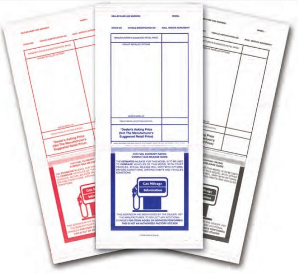 - Sticker contains space for dealer installed options in easy to read format.