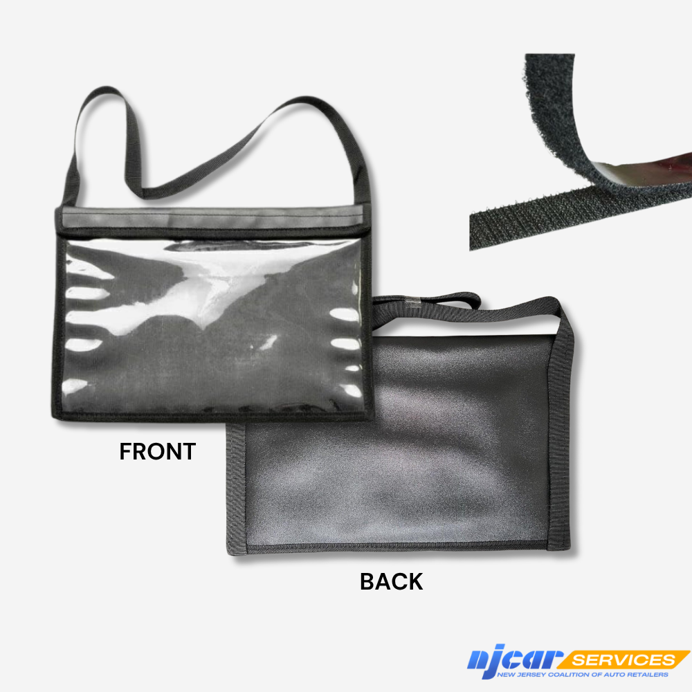 This heavy-duty vinyl tag bag attaches to a trunk lid or SUV window, providing a visible, weather-resistant way to display demo plates. It’s easy to attach and protects the plate from wear.