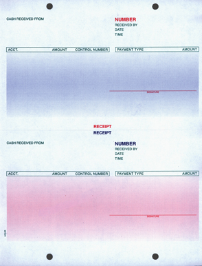 Description: 8 1/2 x 11″, 1 part, white 20# laser paper, prints in red, green & blue ink, perforated in center (5 1/2″), hole punched top & bottom. 250/pack. |