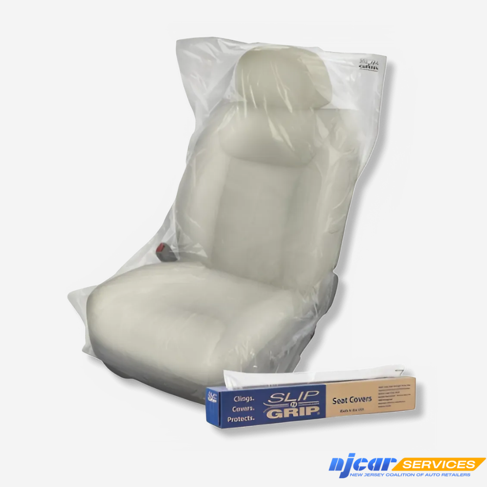 Protect vehicle interiors during service appointments with these disposable plastic seat covers. Designed to grip the seat securely while allowing easy entry and exit, they help maintain cleanliness and customer satisfaction.