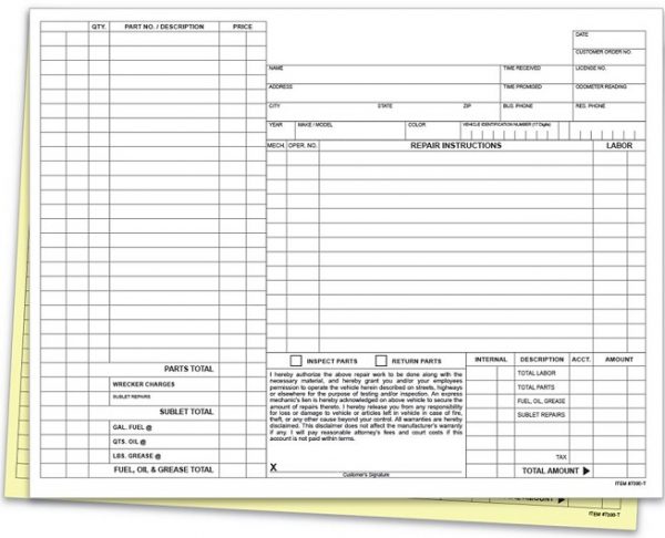 - A generic repair order designed for use by any dealership.