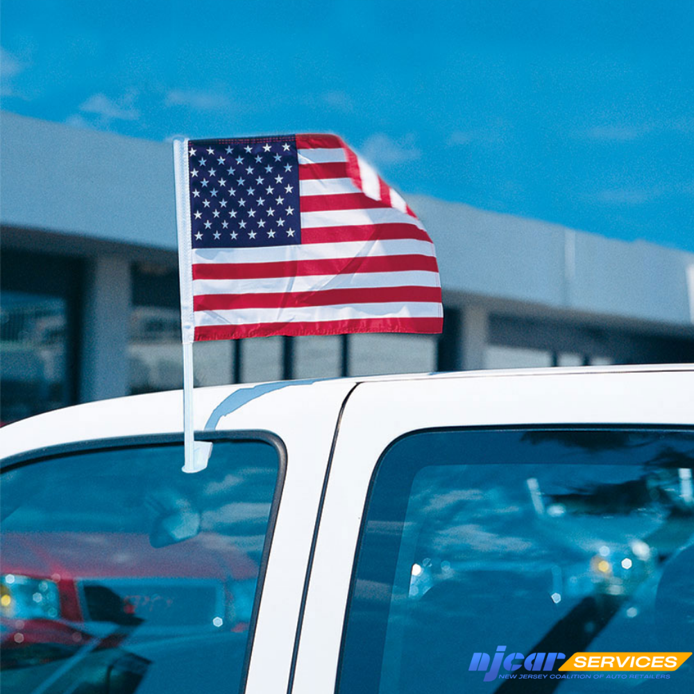 Decorate your personal vehicle or an entire car dealership with our American car flags!  Our deluxe polyester car flags measure 11″ x 15″ and feature double sewn hemmed edges and a hemmed sleeve. The car flag includes a premium white plastic staff for easy installation to any car window.